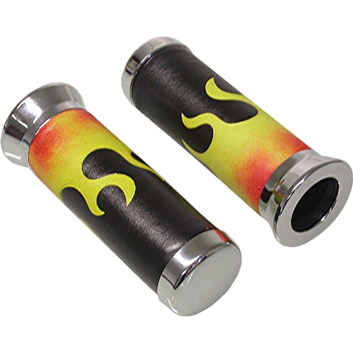 Grips Leather Flame Style Chrome Ends to fit 1" Handlebars (Pair)