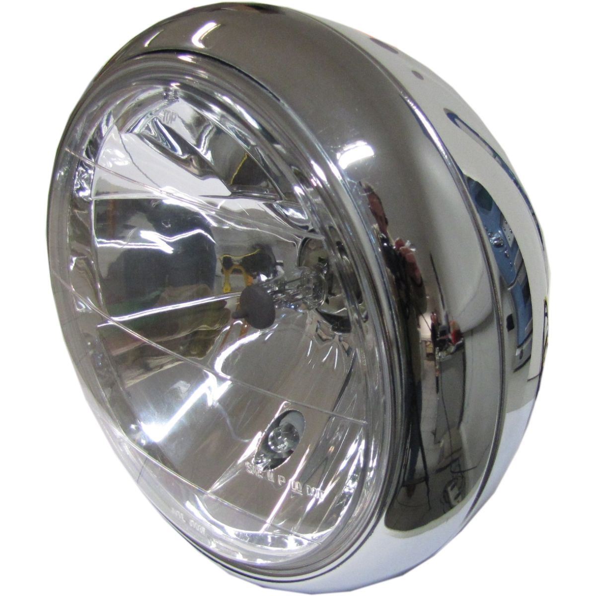 Headlight Round Chrome Bottom Mount Bowl Back 8"Clear Lens